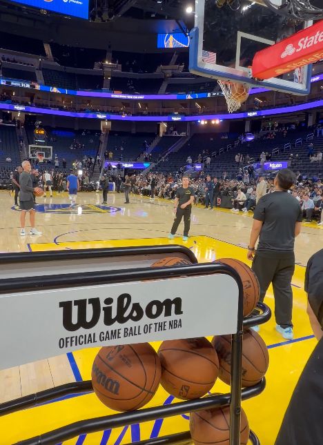 赛前热身环节,库里在logo位置练习三分投射,抬手就有。