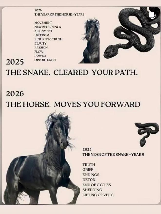 而那张中国传统生肖图片上的祝福意思为:“2025蛇年,为你清理道路。2026马年,愿你一路向前。” ​​​