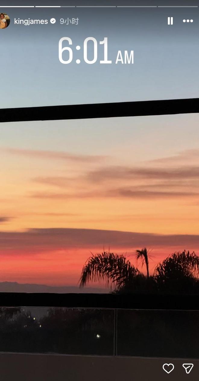 在詹姆斯发布的即时动态里显示的时间为早晨6:01。