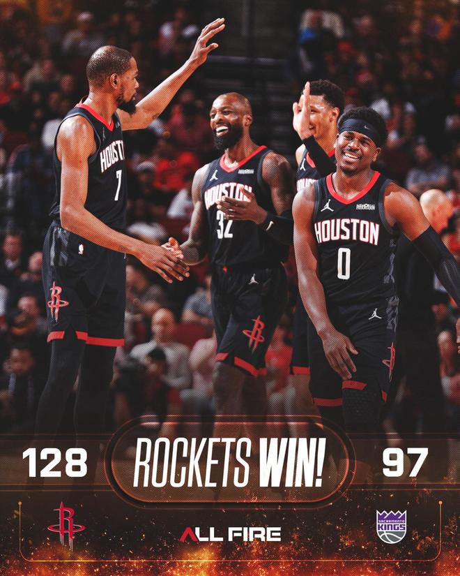 比赛就此失去了悬念,乌度卡随后也换下首发,两队开始在场上练兵,时间逐渐走完。最终,火箭以128比97完胜国王,就此收获2连胜。