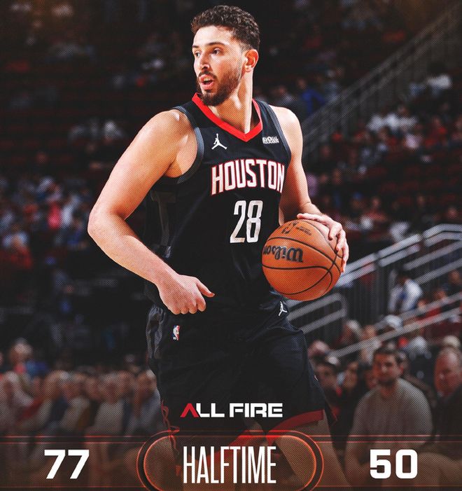 国王连续不得分,威少着急推搡申京犯规,杜兰特上前与其理论。谢泼德外线搭弓射箭投进第6记三分,半场不到已经砍下20分,三分命中数已追平生涯新高。杜兰特干拔中投再进,半场战罢,火箭77-50领先国王27分。